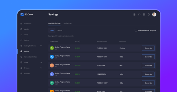 After a successful introduction in the B2Core V2.1 update, the savings feature has been revamped to improve its functionality and profitability model. The renewed Savings Module v1.1 enables end-users to generate passive income with digital assets by transferring their digital holdings into interest savings accounts, similar to those banks offer.